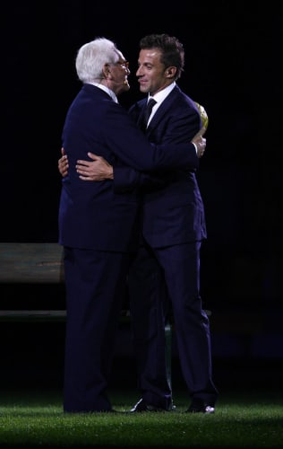 Giampiero boniperti and alessandro del piero star in the opening cermony at juventus stadium.